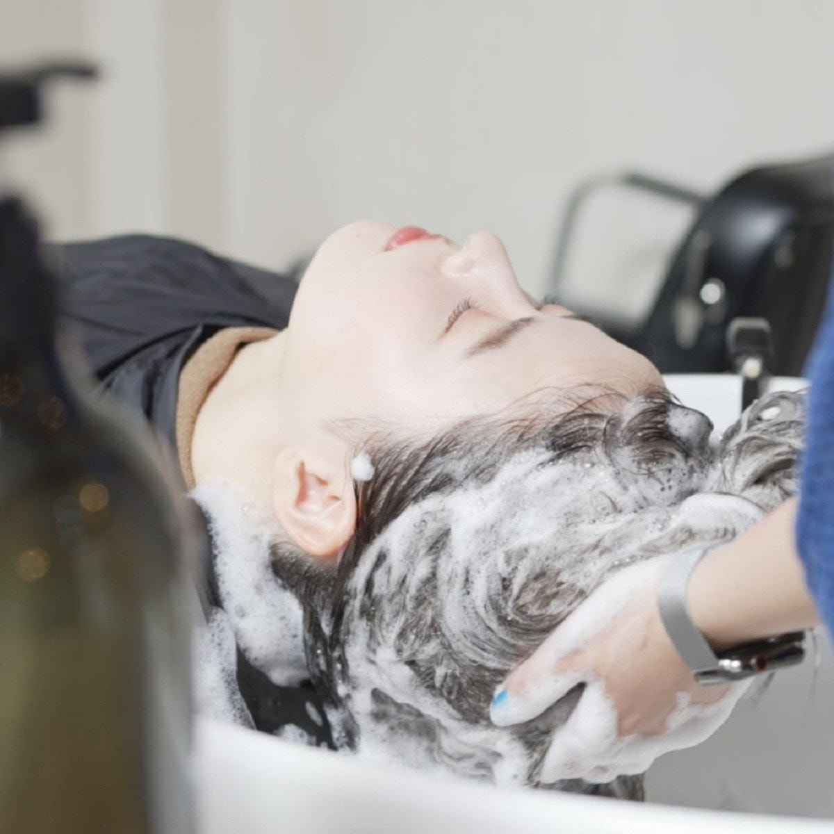 泡立てた濃密泡を頭皮になじませて1~2分間の泡パック。