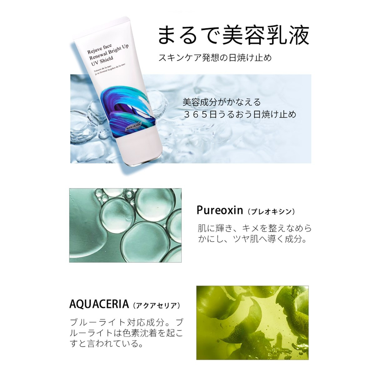 PUREOXINTM(プレオキシン)が肌に輝きをもたらし、キメを整え、自然なツヤ肌を演出します。